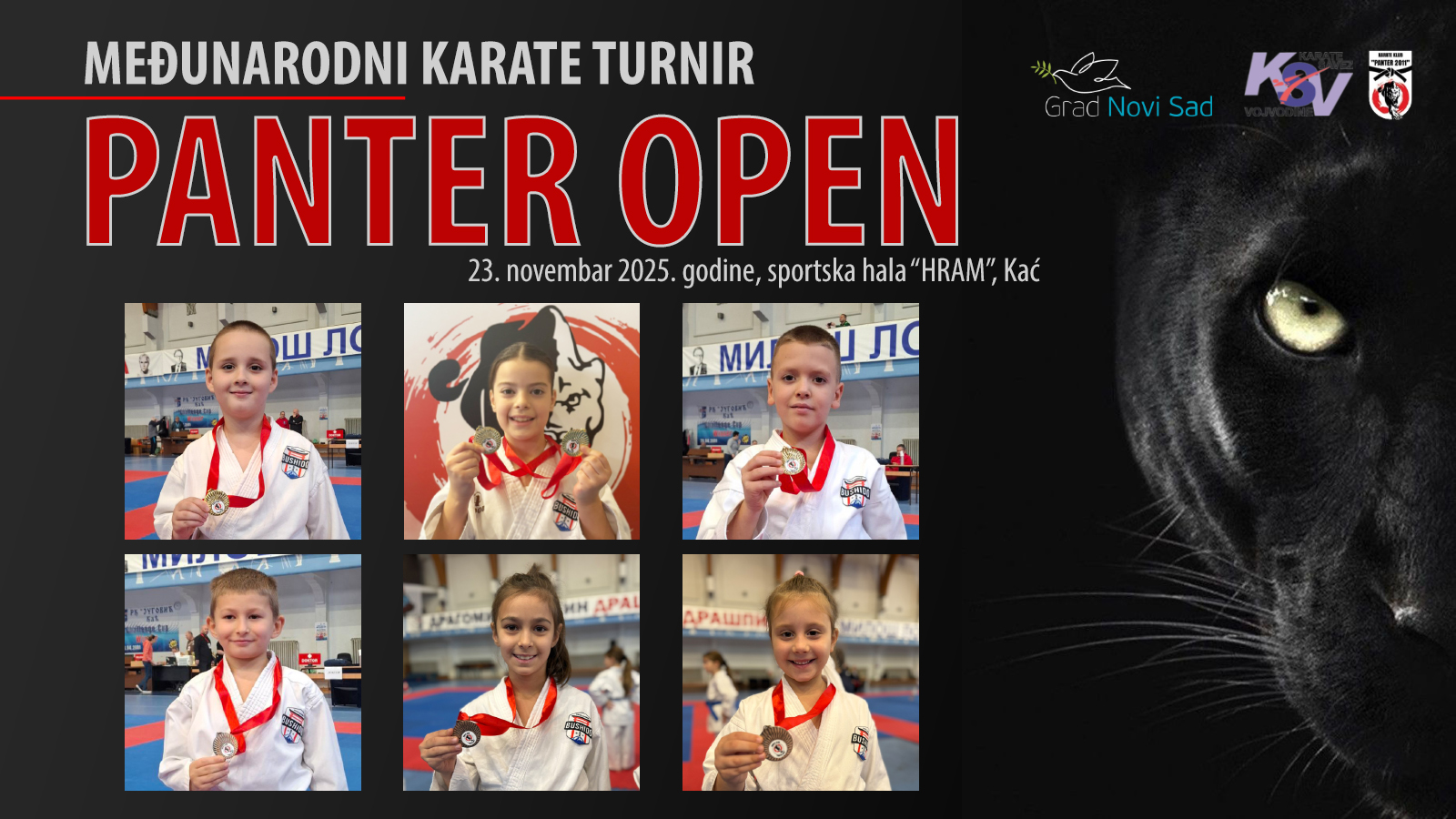 U sportskoj hali “Hram” u Kaću 23. novembra 2025. godine održan je Međunarodni karate turnir PANTER OPEN 2025. Na ovom turniru učestvovali su i naši najmlađi takmičari i postigli su odlične rezultate. U pojedinačnim nastupima osvojili su osam medalja (5 zlatnih i 3 bronzane).