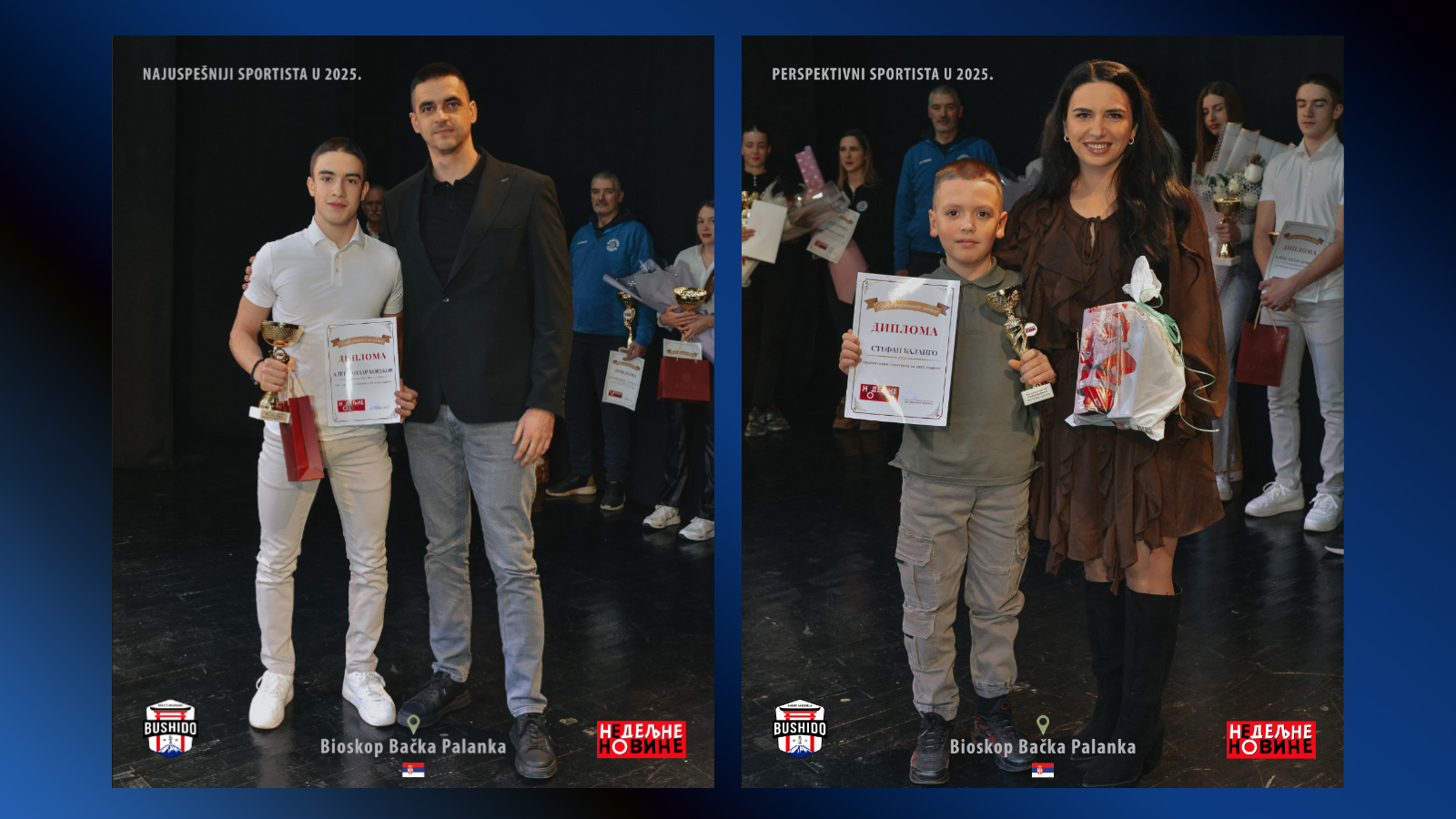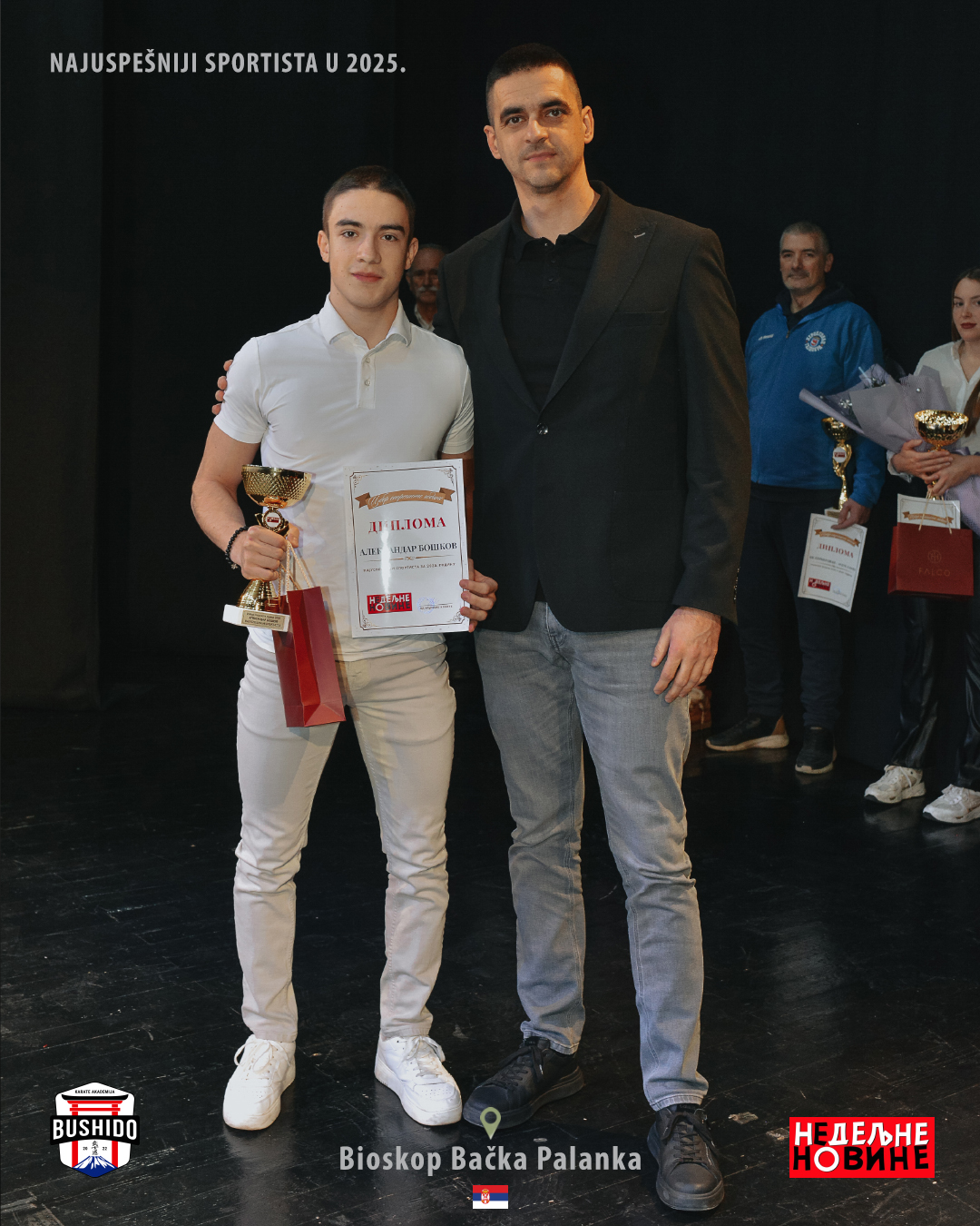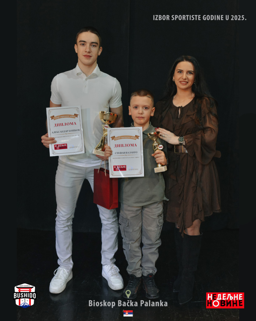 Ove godine, NEDELJNE NOVINE iz Bačke Palanke, 60. put su birale sportistu godine opštine Bačka Palanka. Na ovogodišnjoj tradicionačnoj svečanosti, koja je održana 26. decembra 2025. godine u sali bioskopa Bačka Palanka, među laureatima su bili Aleksandar Boškov i Stefan Balango. Aleksandar Boškov je dobio nagradu za postignute rezultate u 2025. godini, a nagradu mu je uručio naš proslavljeni rukometaš Žarko Šešum. Stefan Balango je dobio nagradu za perspektivnog sportistu, a nagradu mu je uručila naša proslavljena karatiskitnja Bojana Knežević. Ove dve nagrade su još jedan pokazatelj da je 2025. godina bila veoma uspešna za našu Akademiju.