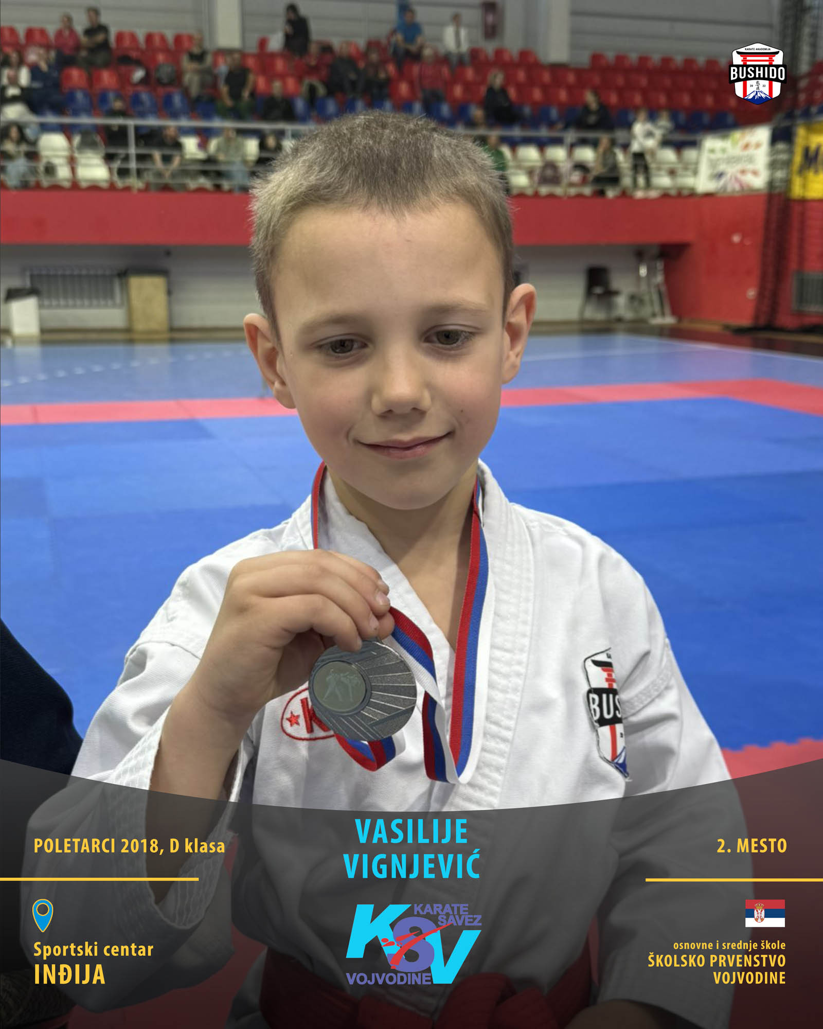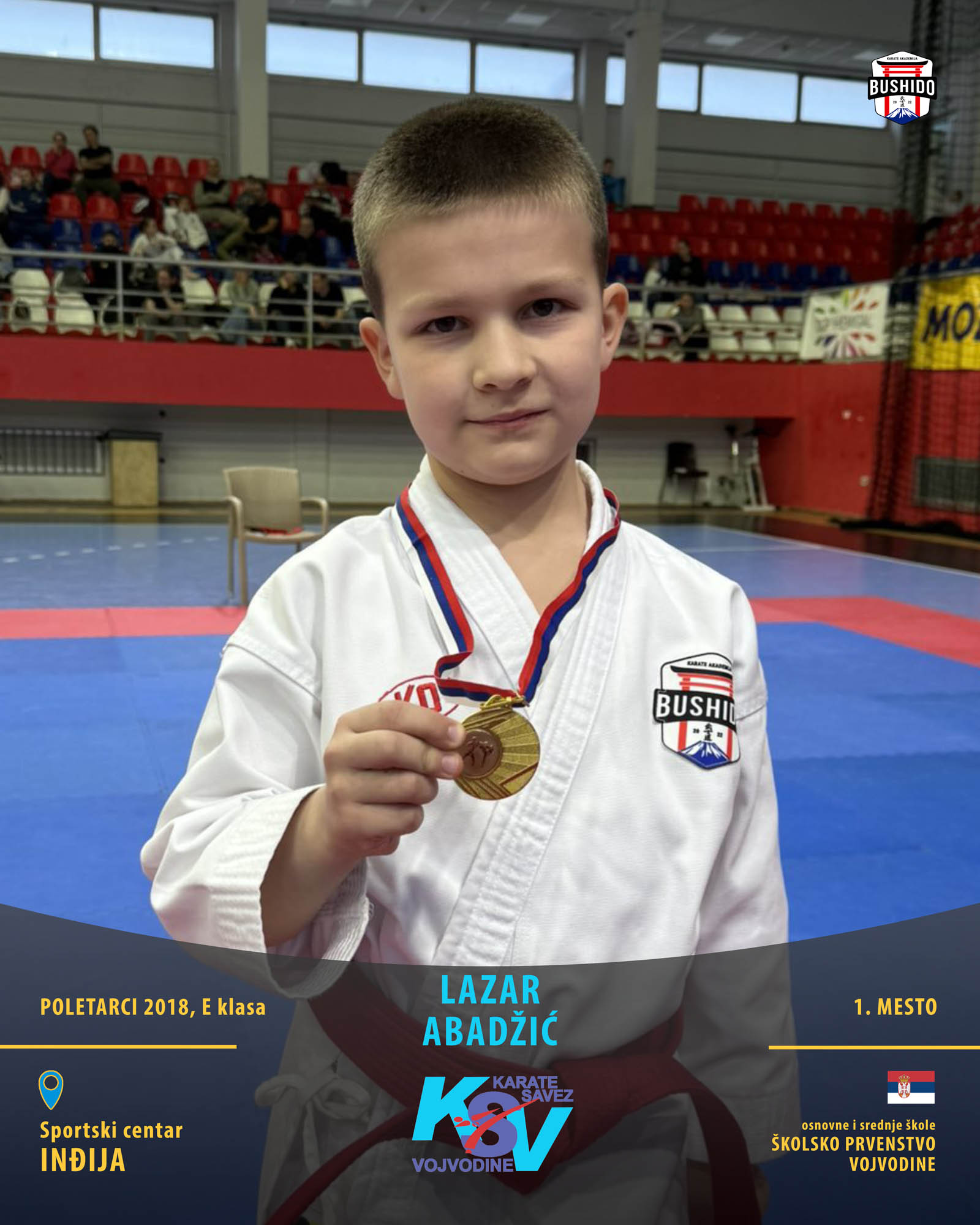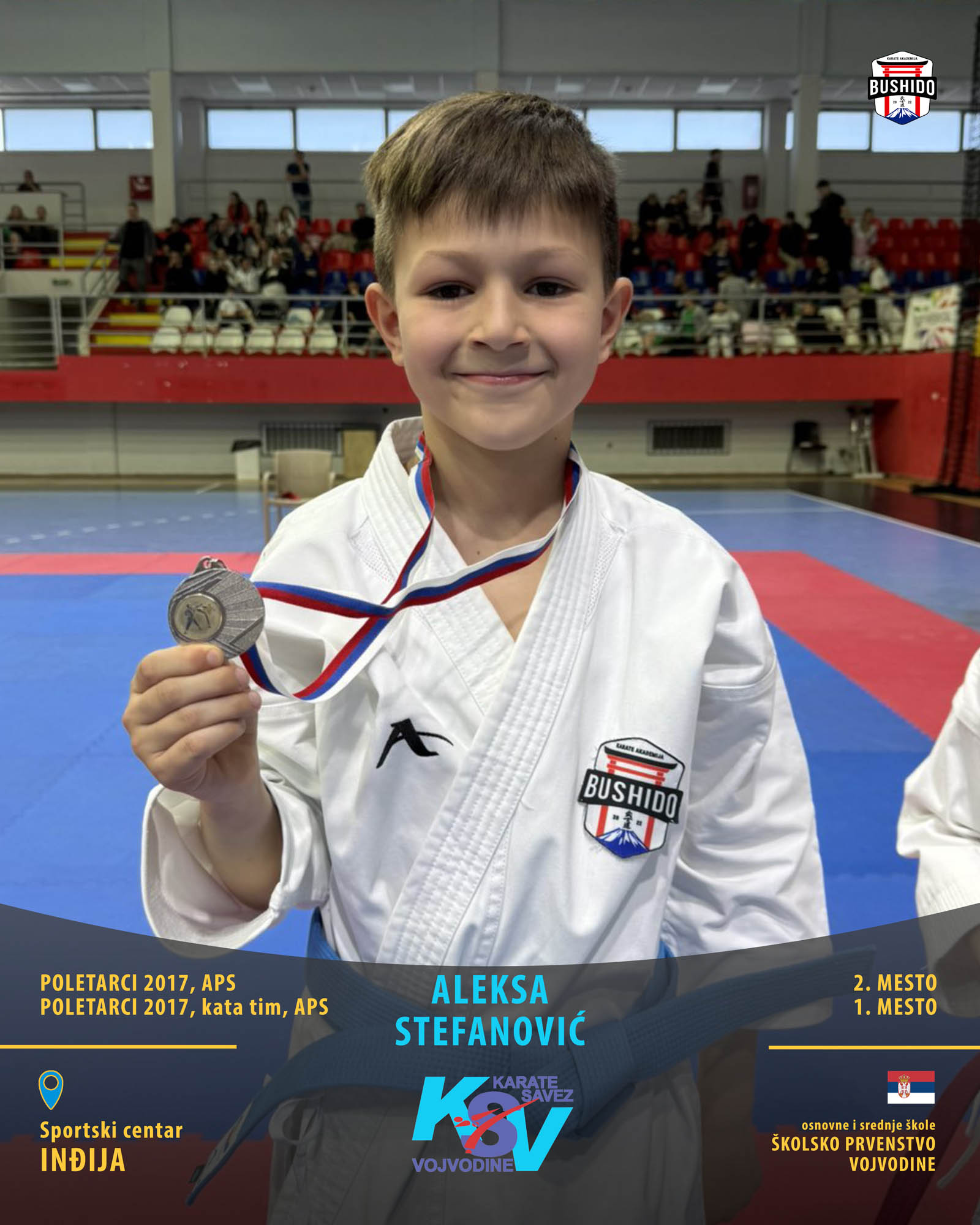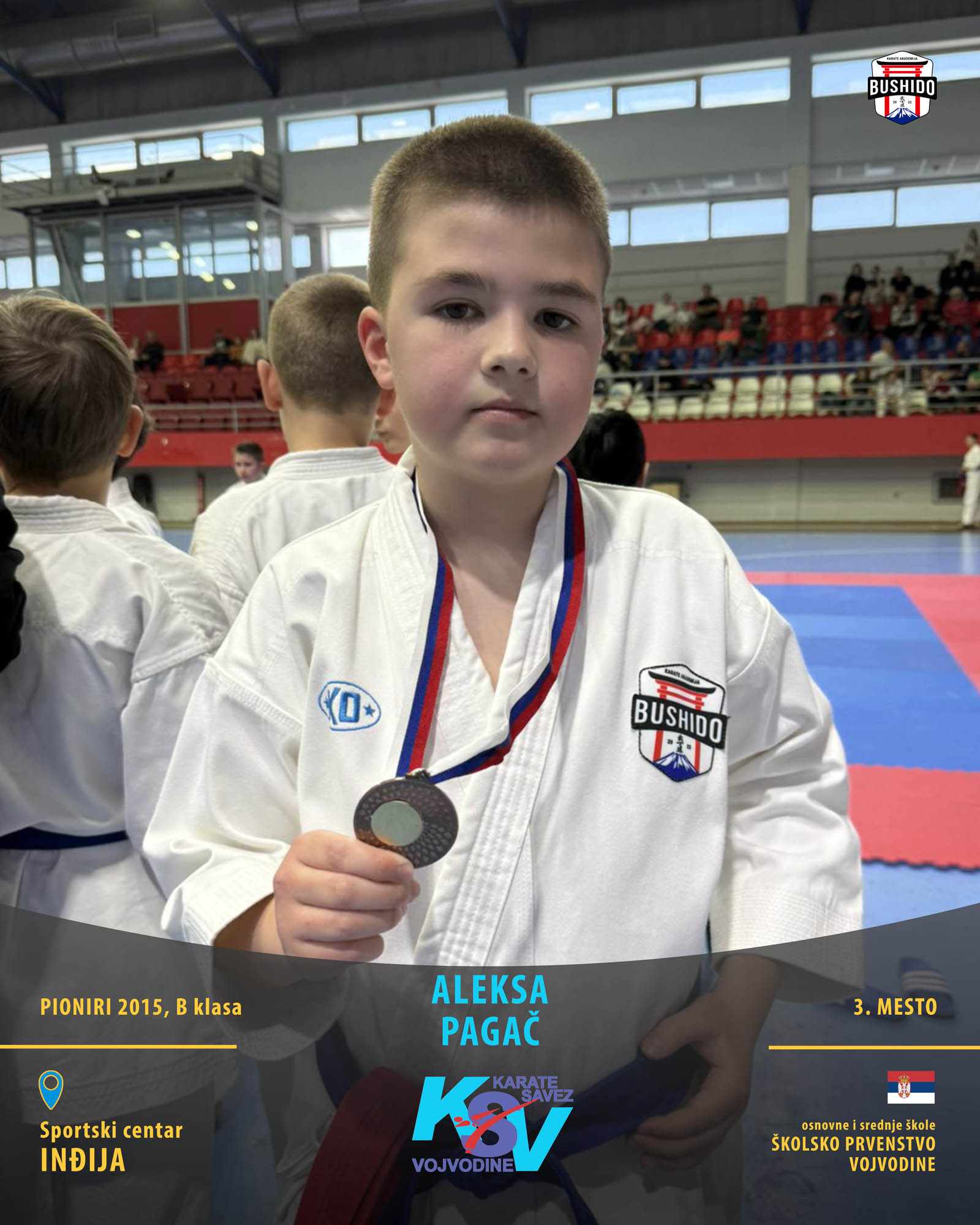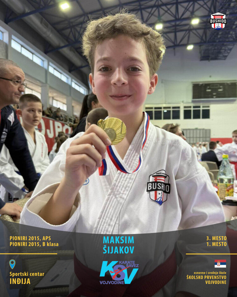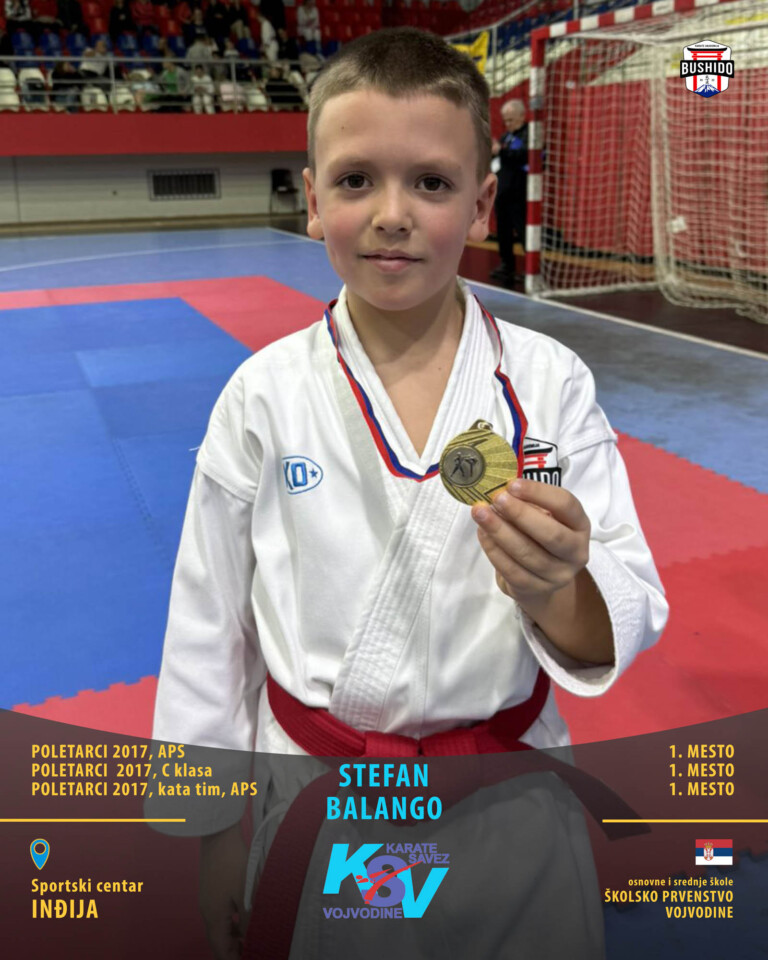 U Novom Sadu je u nedelju, 8. marta 2026. godine održano Prvenstvo Vojvodine za poletarce, pionire i nade u organizaciji Karate saveza Vojvodine. Nastupilo je ukupno 43 karate kluba iz Vojvodine, a naši najmlađi takmičari su imali sjajan nastup osvojivši čak 24 medalje od čega 12 zlatnih, 6 srebrnih i 6 bronzanih zauzevši na taj način ukupno drugo mesto na listi najbolji klubova Vojvodine. Pravi podvig napravili su Stefan BALANGO i Aleksa VLAISAVLJEVIĆ koji su uspeli da osvoje čak tri zlatne medalje. Nastupili su zajedno u kata timu, a zatim su osvojili zlatne medalje i u pojedinačnoj konkurenciji u svojim godištima u apsolutnoj kategoriji i u klasama. Osvajači medalja na ovom prvenstvu ostvarili su plasman na državno prvenstvo.