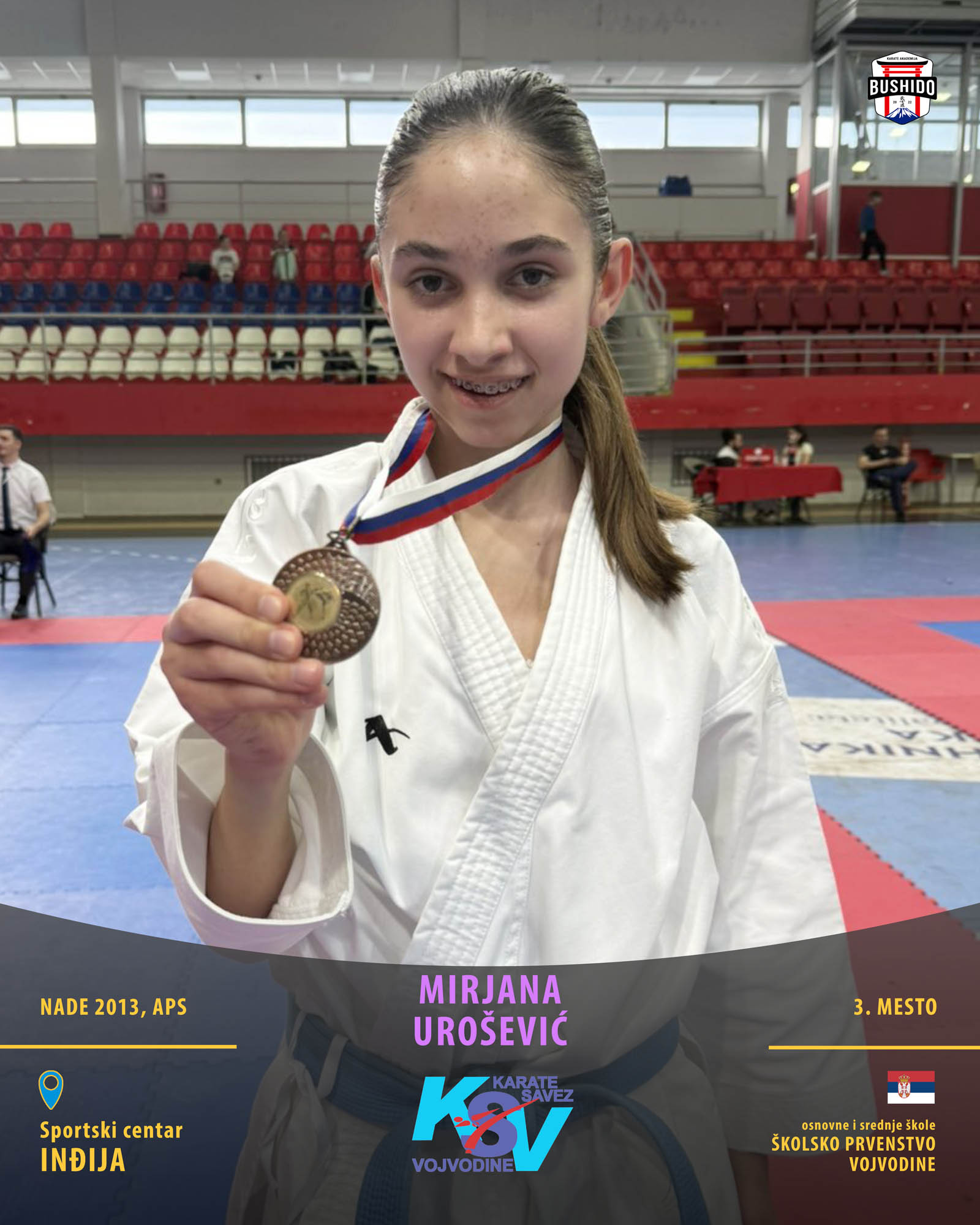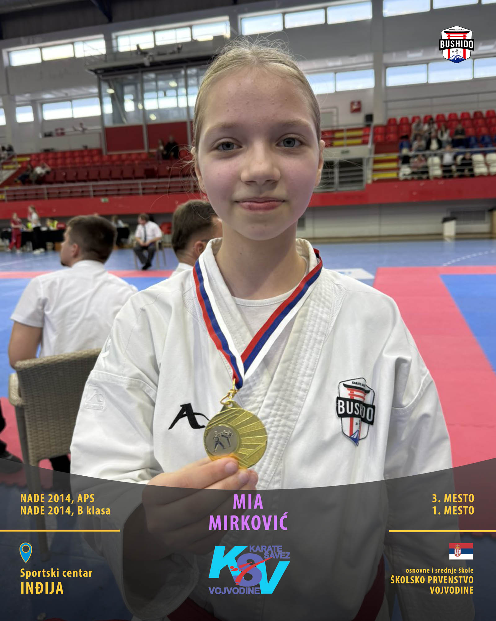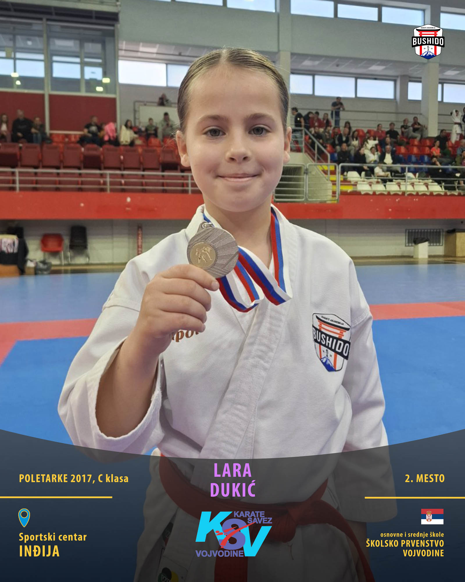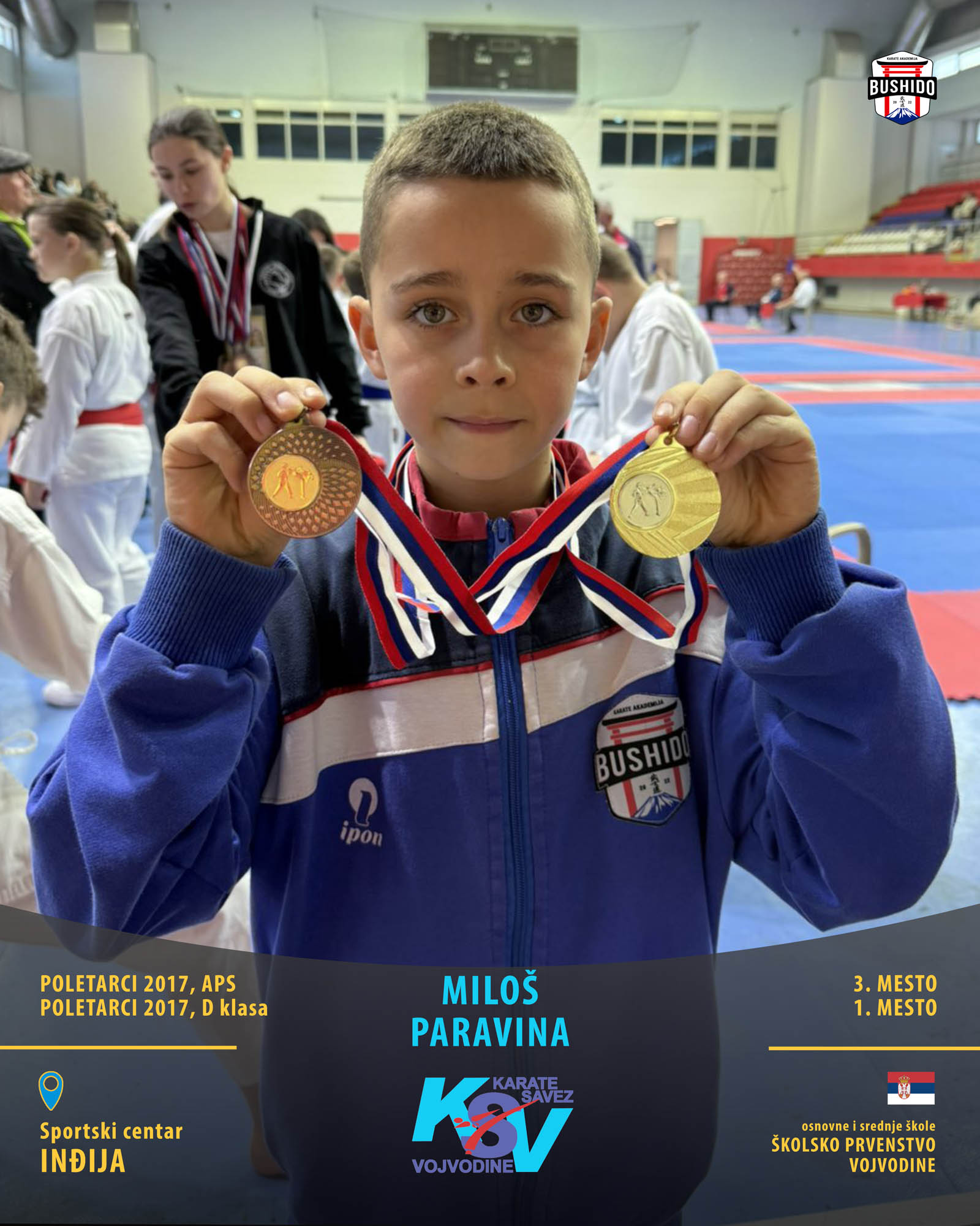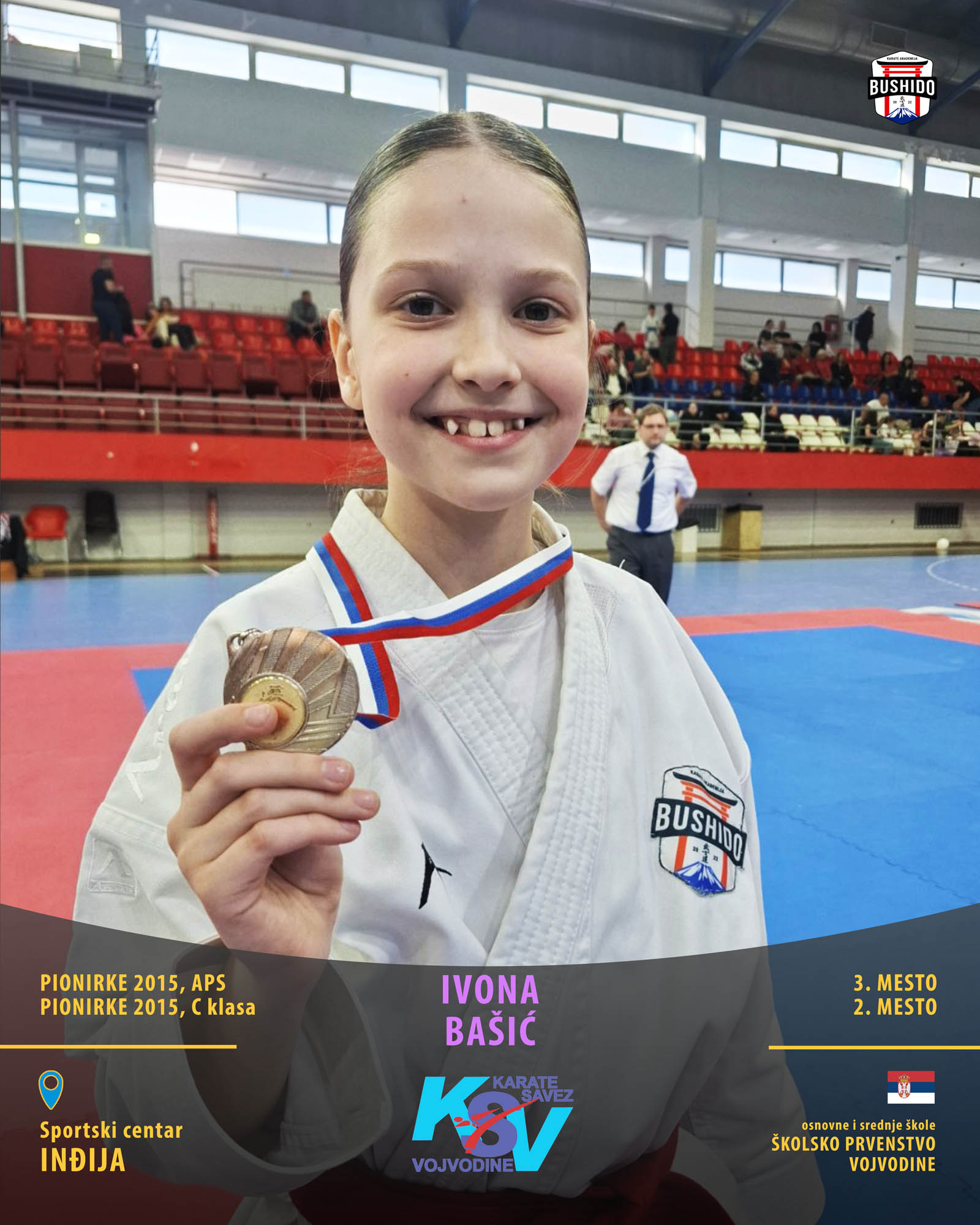 U Novom Sadu je u nedelju, 8. marta 2026. godine održano Prvenstvo Vojvodine za poletarce, pionire i nade u organizaciji Karate saveza Vojvodine. Nastupilo je ukupno 43 karate kluba iz Vojvodine, a naši najmlađi takmičari su imali sjajan nastup osvojivši čak 24 medalje od čega 12 zlatnih, 6 srebrnih i 6 bronzanih zauzevši na taj način ukupno drugo mesto na listi najbolji klubova Vojvodine. Pravi podvig napravili su Stefan BALANGO i Aleksa VLAISAVLJEVIĆ koji su uspeli da osvoje čak tri zlatne medalje. Nastupili su zajedno u kata timu, a zatim su osvojili zlatne medalje i u pojedinačnoj konkurenciji u svojim godištima u apsolutnoj kategoriji i u klasama. Osvajači medalja na ovom prvenstvu ostvarili su plasman na državno prvenstvo.