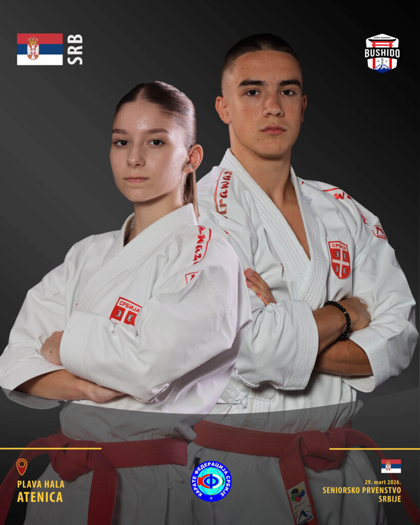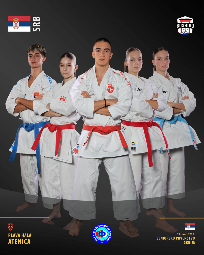 Sjajan rezultat seniora “Karate akademije Bušido”. Naših pet takmičara obezbedilo je učešće na Prvenstvu Srbije za seniore i time pokazali da je naša Akademija jedna od najboljih u Srbiji u disciplini kate. U Plavoj hali u Atenici, nadomak Čačka, održano je Seniorsko prvenstvo Srbije 29. marta 2026. godine. Našu Akademiju predstavljali su Aleksandar Boškov, Jovan Urošević, Nađa Valašek, Sofija Rađenović i Una Blagojević. Naši takmičari su imali sjajne nastupe i uspeli su da osvoje dve medalje.