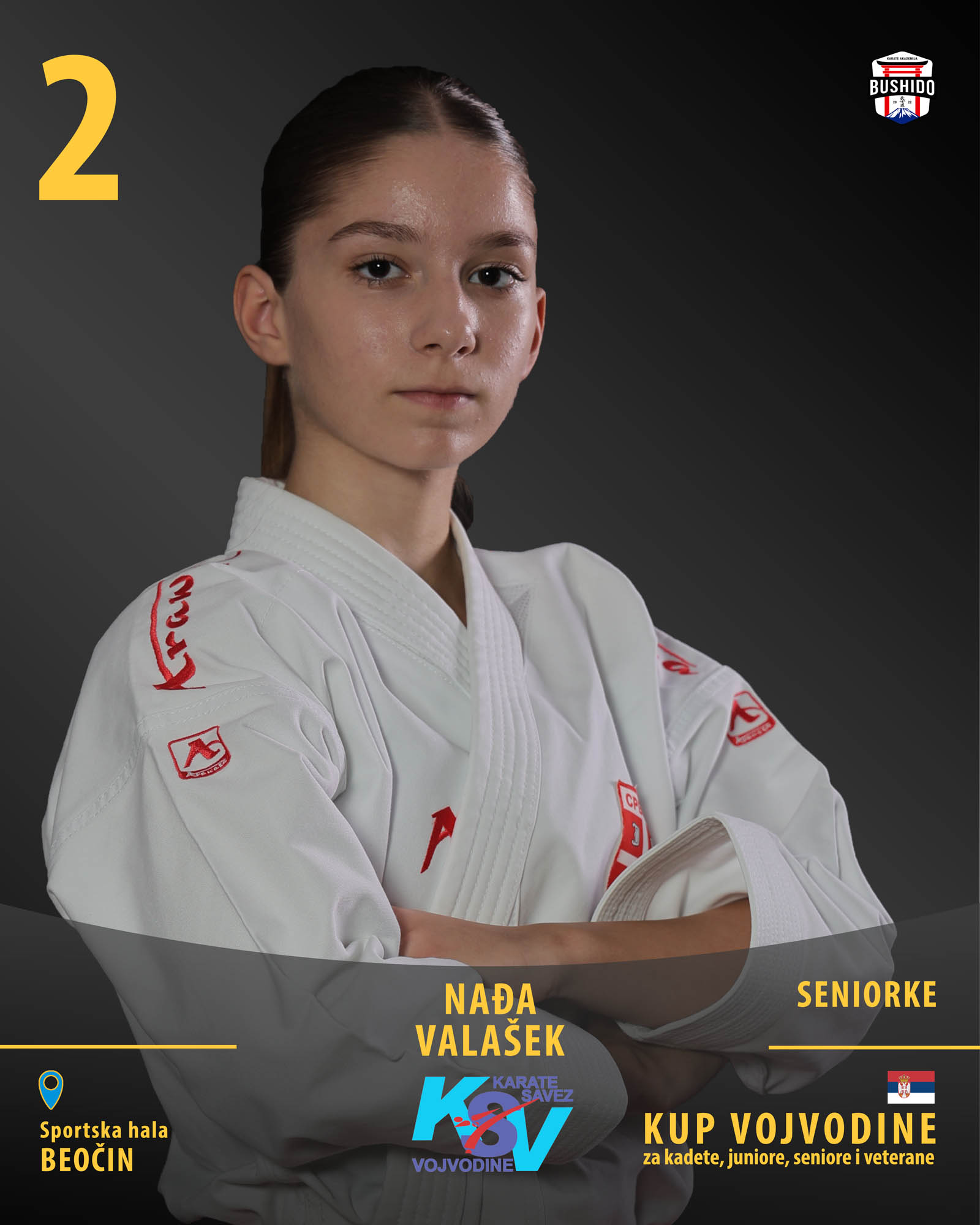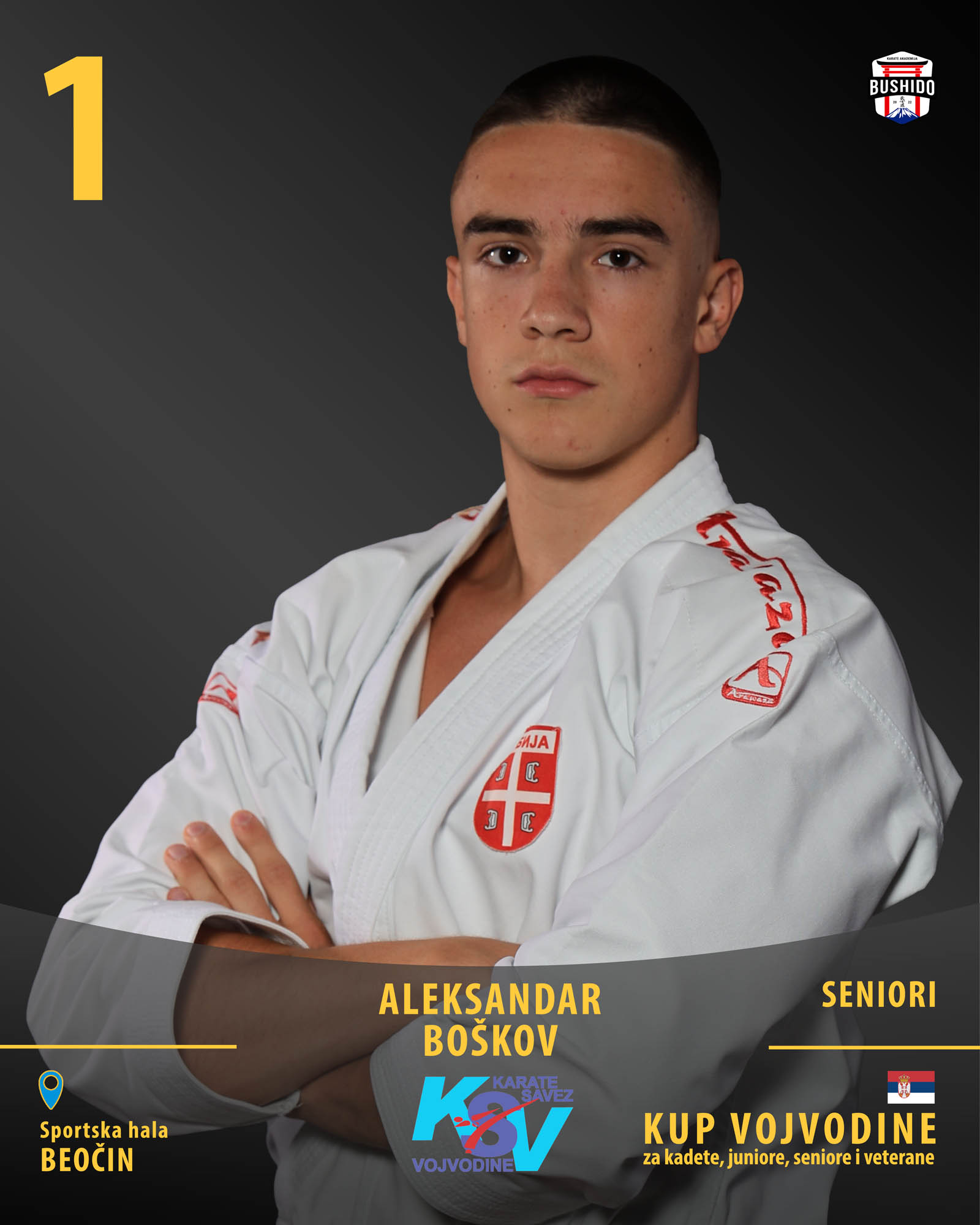 U subotu, 18. aprila 2026. godine u Sportskoj hali Beočin održan je KUP VOJVODINE ZA KADETE, JUNIORE, SENIORE i VETERANE na kojem je nastupilo sedam takmičara SU “Karate akademije Bušido”. U seniorskoj konkurenciji nastupila su tri takmičara. U konkurenciji seniora Aleksandar Boškov je po treći put uzastopno osvojio titulu pobednika Kupa Vojvodine. Na postolju mu se ovaj put pridružio i mladi Jovan Urošević koji je uspeo da osvojio treće mesto iako ima samo 16 godina. To je za njega bila prva seniorska medalja. U konkurenciji seniorki mlada nada naše Akademije Nađa Valašek osvojila je drugo mesto što je još jedna potvrda njenih sjajnih nastupa ove godine. U juniorskoj konkurenciji naši takmičari su napravili zaista vanserijski rezultat. Naime u oba finala, juniori i juniorke, sastali su se naši takmičari. Kod juniora prvo mesto osvojio je Andrija Greb, dok je drugi bio Jovan Urošević. Kod juniorki prvo mesto pripalo je Nađi Valašek, dok je druga bila Irena Grujanić. Ali to nije bilo sve. Da se zaokruži fantastičan uspeh na Kupu Vojvodine pobrinule su se naše kadetkinje osvojivši čak tri medalje. Prvo mesto pripalo je Ireni Grujanić dok su treće mesto osvojile Mirjana Urošević i Jovana Tomanović. Sa našim takmičarima na Kupu srbije bili su Ivan Kunevski i Bojana Knežević.