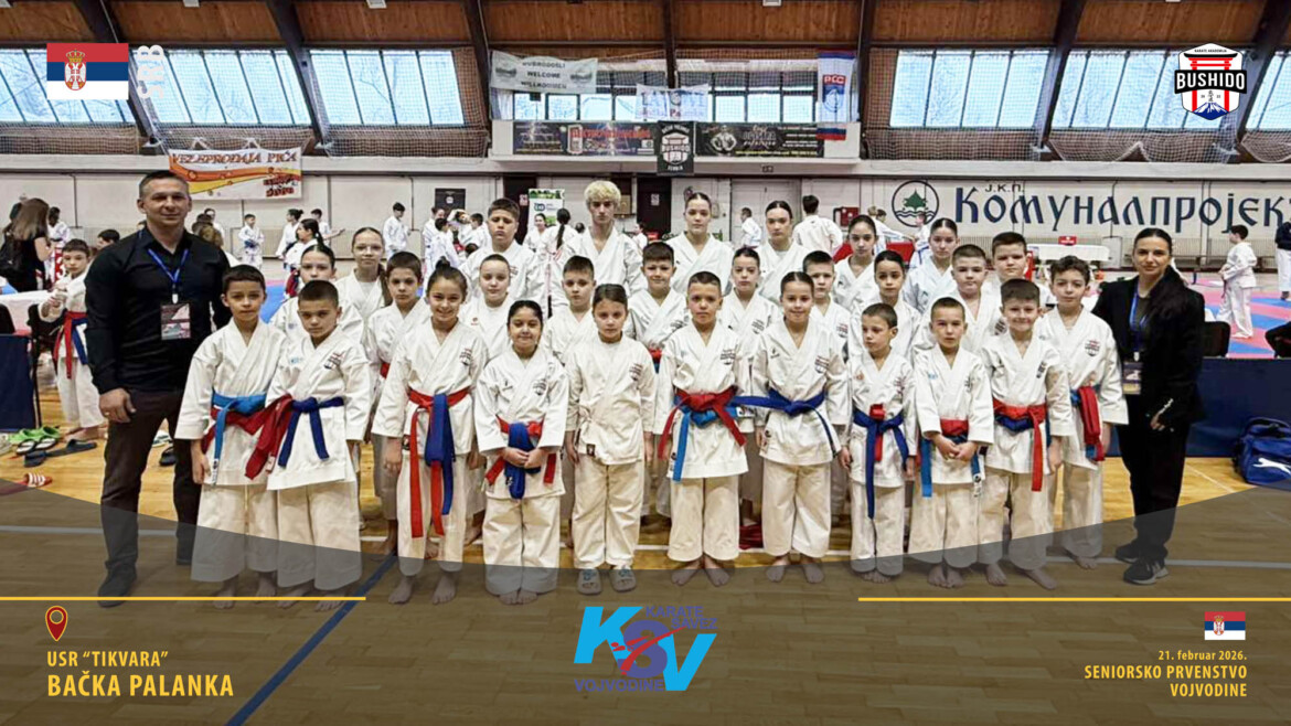 Prilog Radio televizije Bačka Palanka o Prvenstvu Vojvodine za seniore i veterane i Prvenstvu zone Bačka za poletarce, pionire i nade u karateu. USR “Tikvara”, Bačka Palanka, 21. februar 2026. godine.