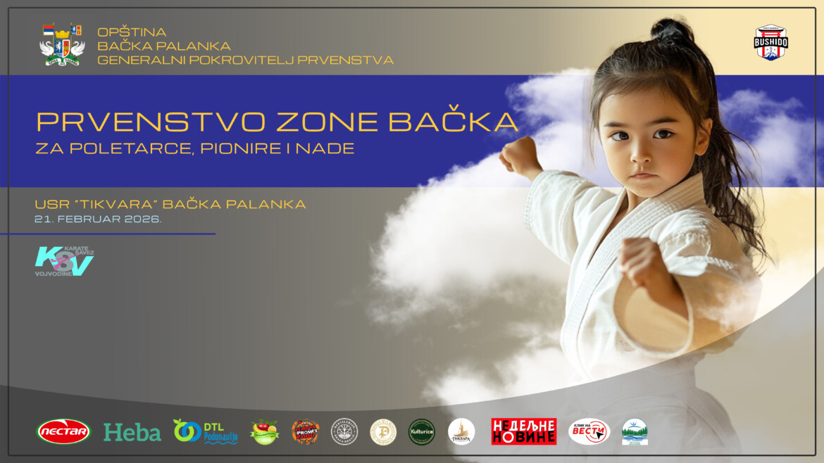 U organizaciji Karate saveza Vojvodine u subotu 21. februara 2026. godine u Bačkoj Palanci će biti održano Prvenstvo zone Bačka za poletarce, pionire i nade.